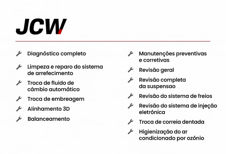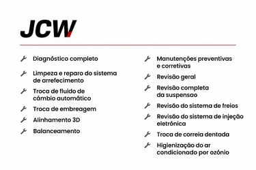 Na JCW Garage, cada serviço é realizado com atenção aos detalhes e compromisso com a qualidade.